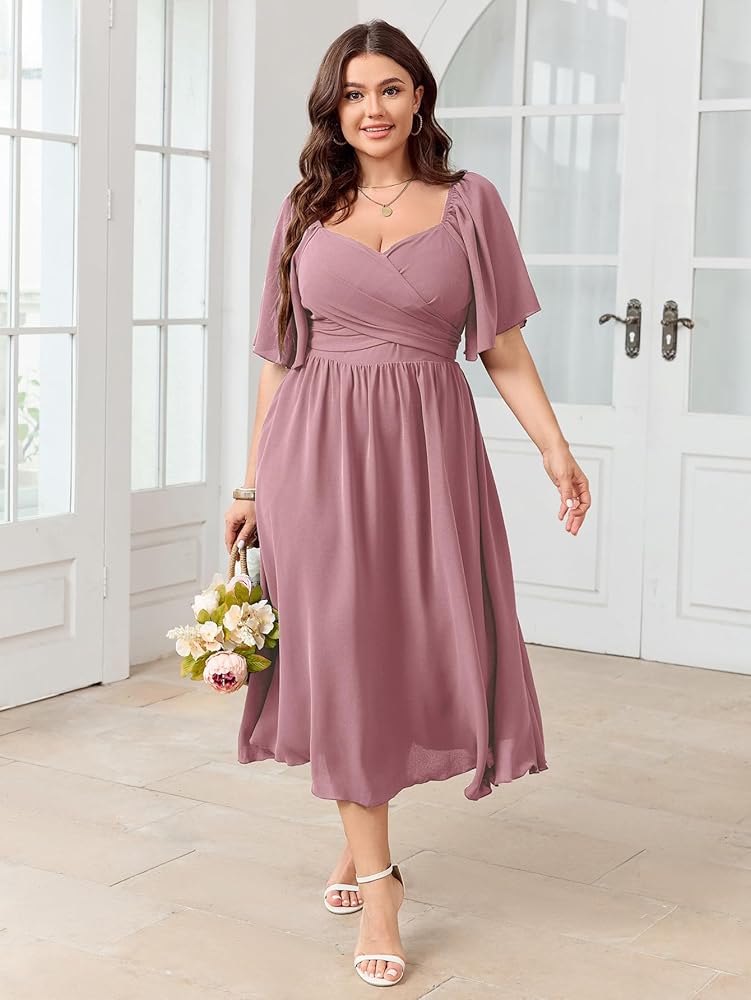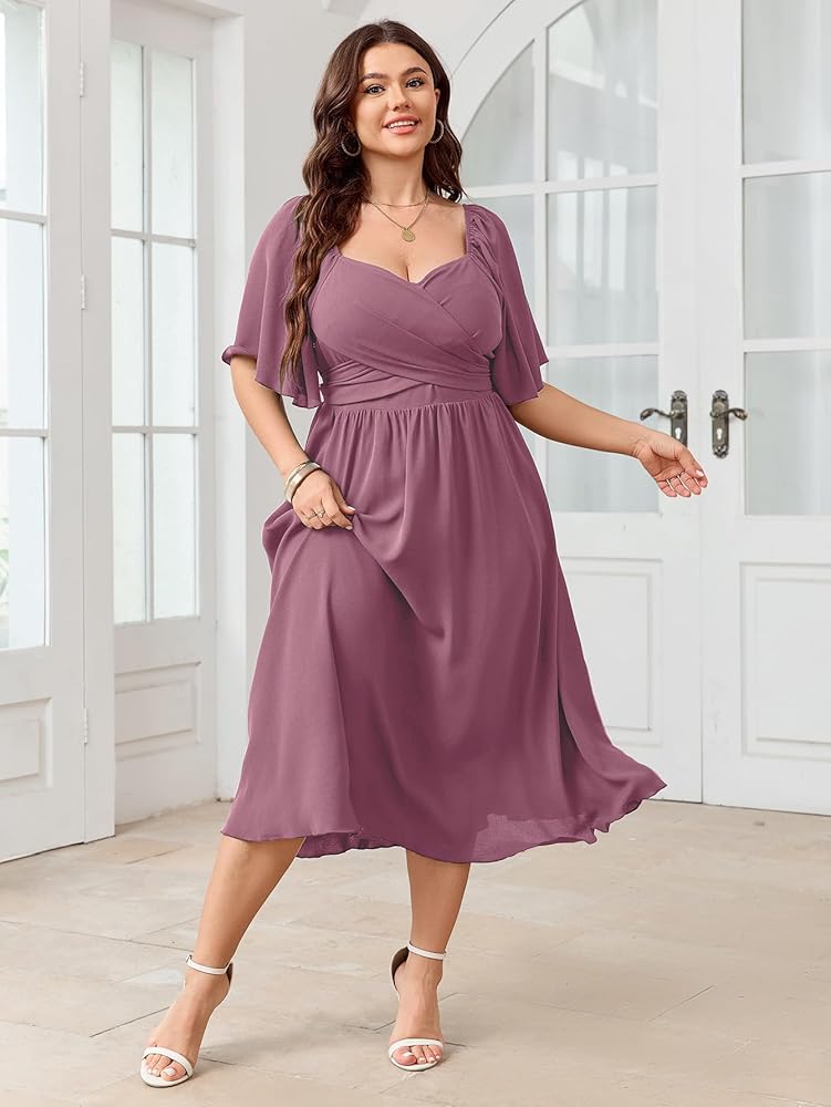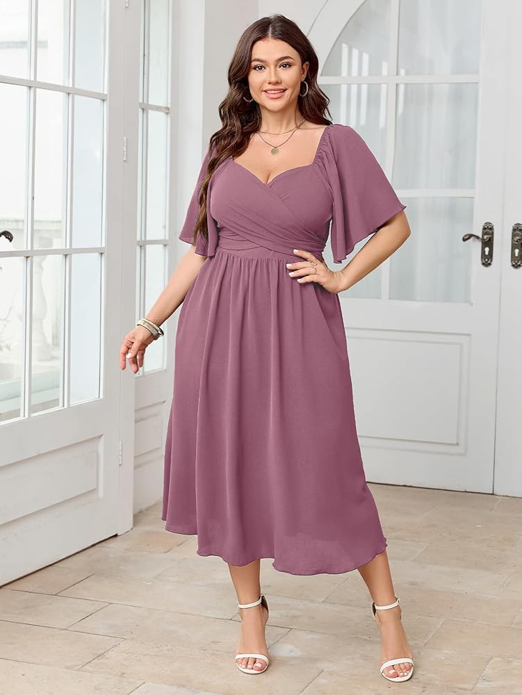 Design: Plus Size Dresses For Curvy Women Features Ruffle Short Sleeve, Sweetheart Neckline, Smocked Back, A-Line Midi Dress. Swing A Line Dress Accentuates Your Waistline While Providing A Comfortable And Flexible Fit. Suit For Different Body Shapes