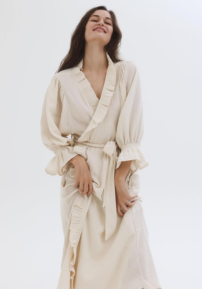 MUSLIN GAUZE COTTON FABRIC: Our maxi robe is blended with soft muslin cotton fabric that makes you feel comfy, breathable, lightweight and skin-friendly. Feel comfortable on all the stages of pregnancy in any season whether summer or winter our stylish maxi dress always look graceful.