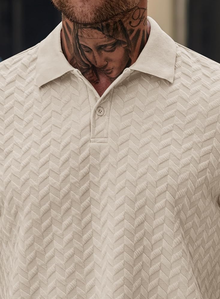 TEXTURE POLO SHIRTS: The perfect blend of timeless style. Combining classic style with modern comfort, this men's textured shirt is a must-have for every wardrobe.