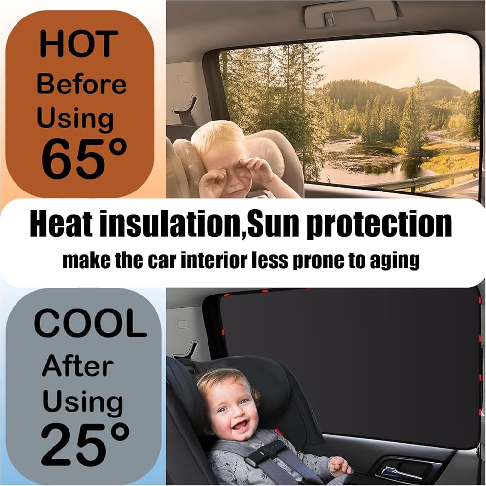 2PCS Car Shades for Rear Windows with Magnetic, 100% Blackout UV Protection Privacy Curtains, Car Window Shade Covers for Baby, Universal Auto Accessories Fits for Camping, Travel, Napping