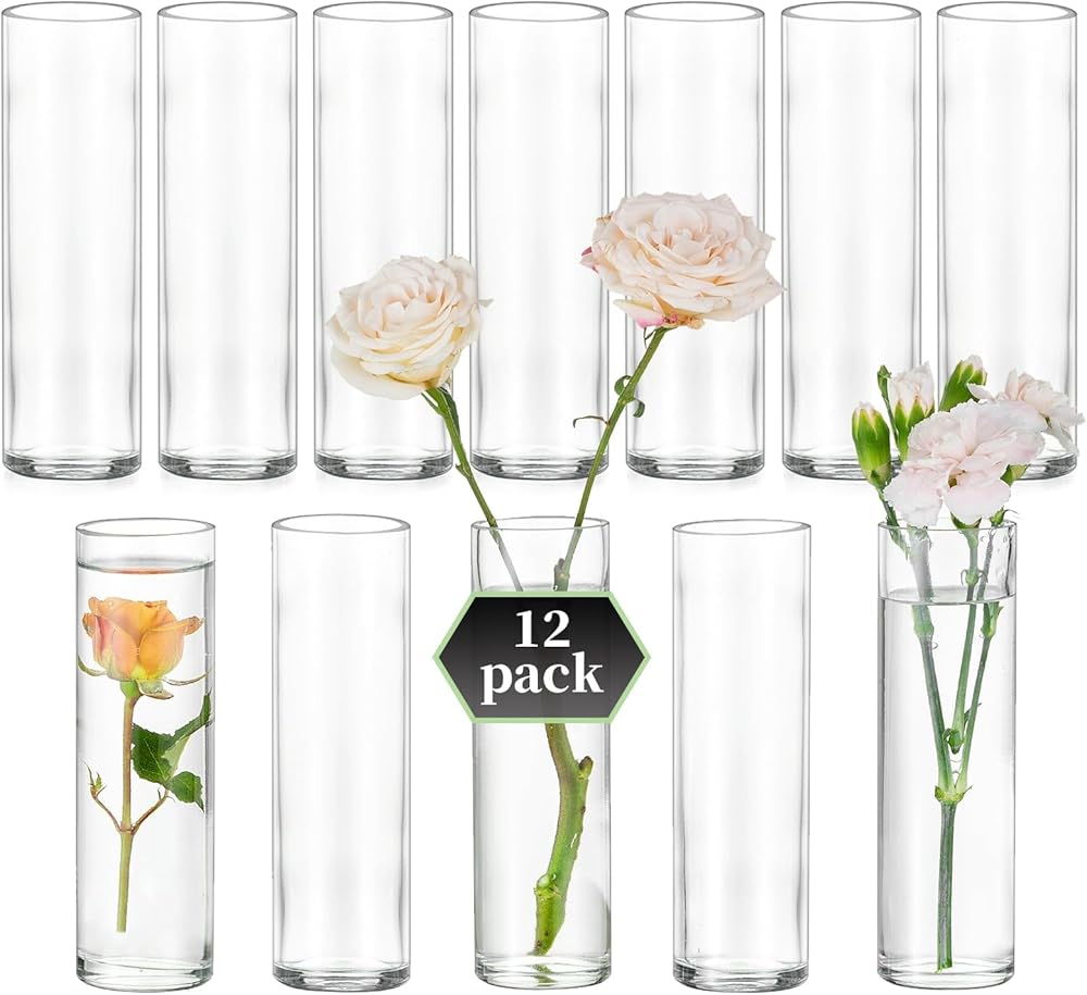 Small Flower Vase Set of 12: Glasseam Cylinder Glass Bud Vases for Centerpieces Wedding Party Table 5.9In Modern Clear Vases for Flowers Single Stem Roses Tulips