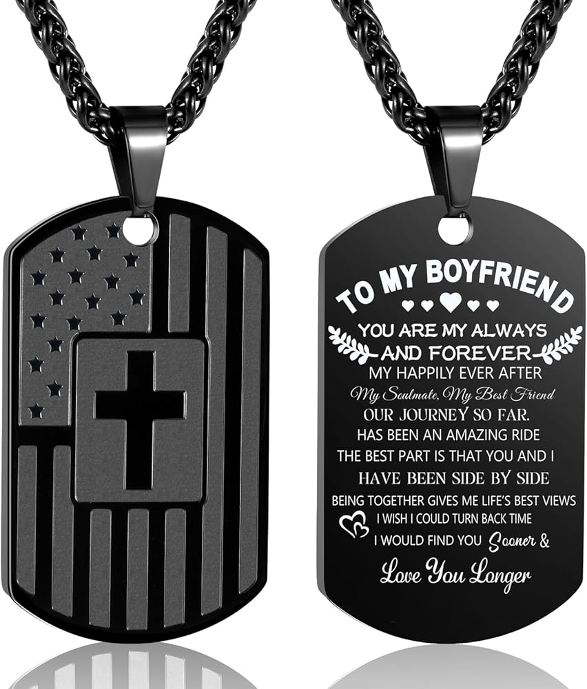 Son Gifts from Dad: A personalized dog tag necklace with cross and American flag pattern, and sentimental quotes to your son engraving on the back. This to my son necklace from dad, will be a nice gift to express dad's love to son on Easter, Valentines Day, Fathers Day, Graduation, Christmas, Independence Day, Birthday, or other meaningful days.