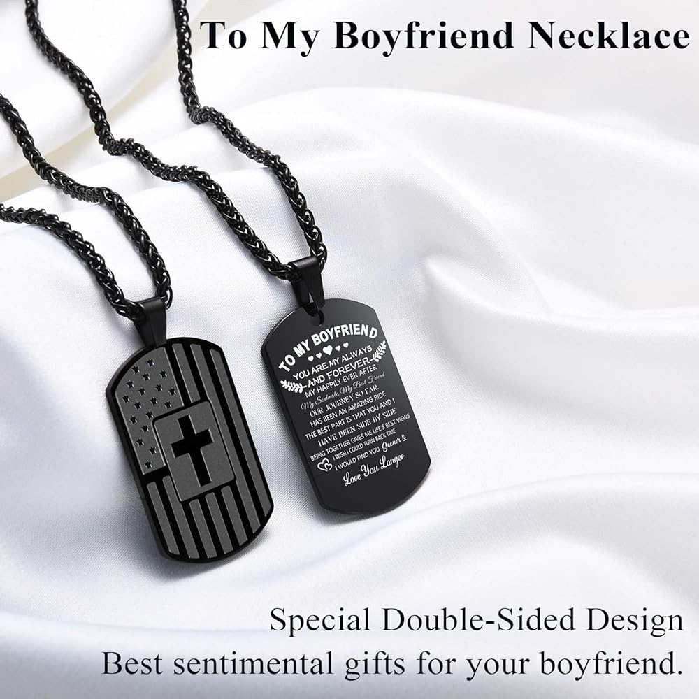 To My Son Husband Boyfriend American Flag Cross Necklace Dog Tag Pendant Chain Easter Valentines Fathers Day Christmas Birthday Graduation Thanksgiving Christian Religious Gifts for Boys Men Him