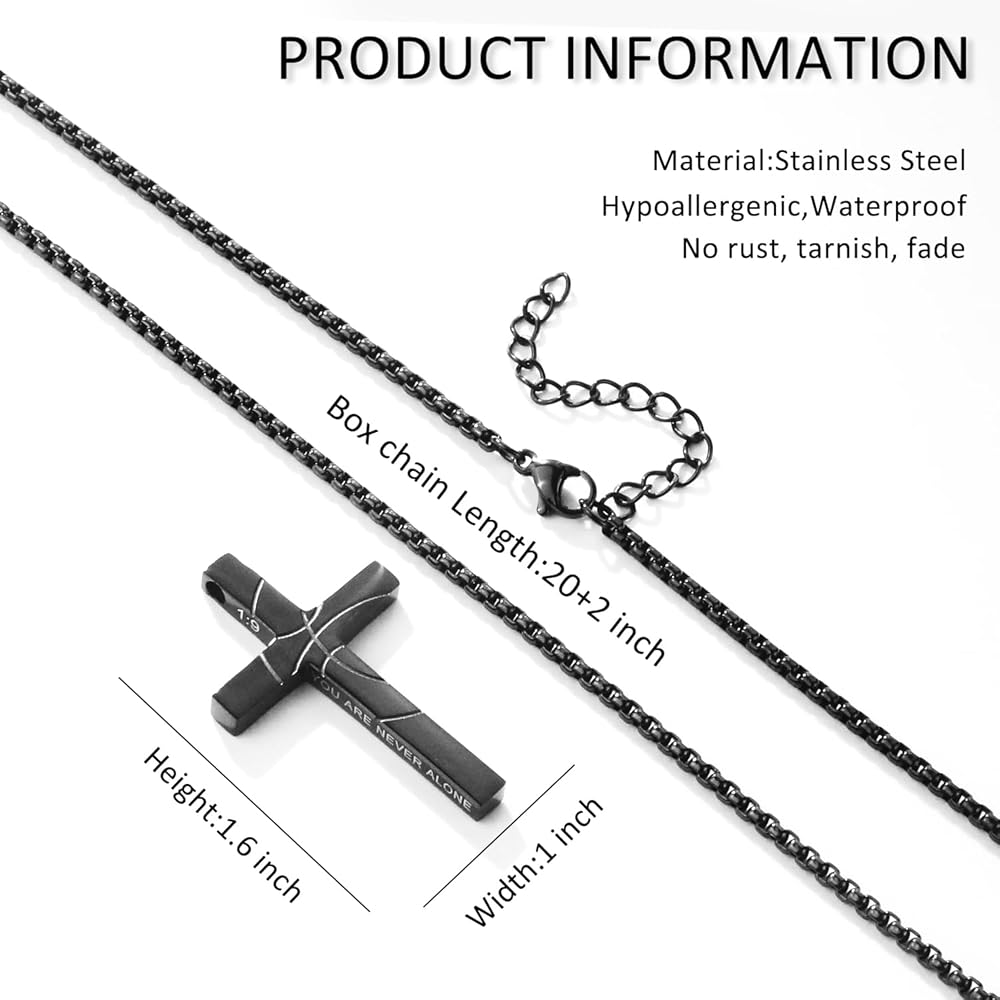【Cross Chain Size】The pendant size is 1.6 inch*1 inch(4.0*2.5 cm), and the box chain Length is 20+2 inches. You can adjust the length to your liking. The size is suitable for wear.