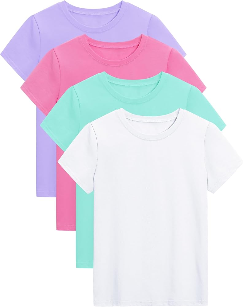 Soft Cotton Material:4 Pack Girls short sleeve shirts are made of premium cotton, which is very comfortable, breathable and also absorbs sweat to bring your girls cool all day.