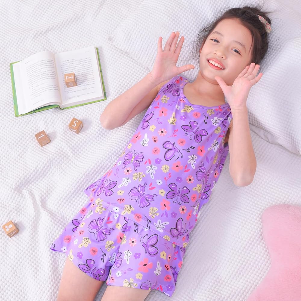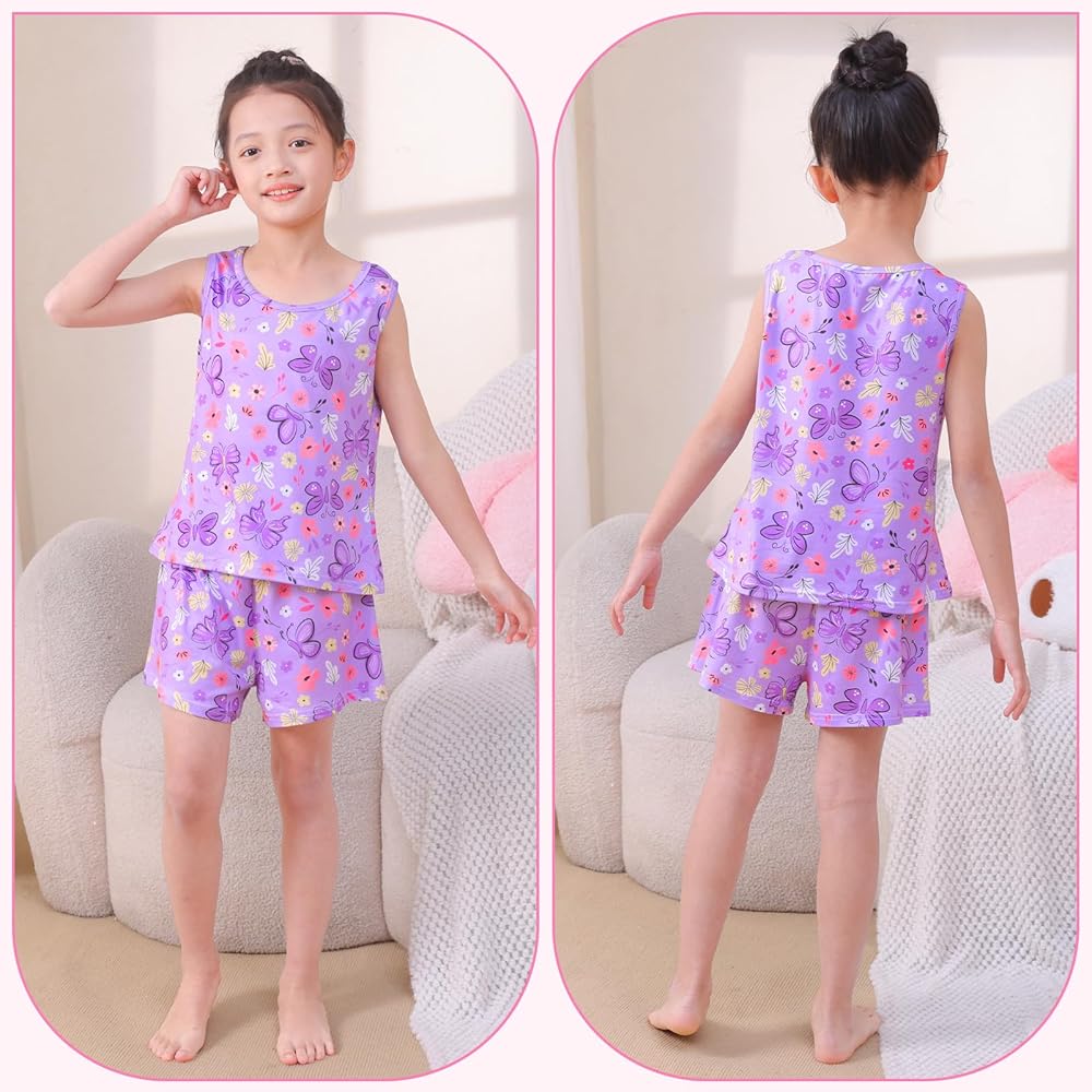 Unique design: The design of girls summer pajamas is unique and beautiful. The vest is paired with shorts, which is especially suitable for outdoor activities or casual time, allowing you to stay fresh and fashionable in the hot summer