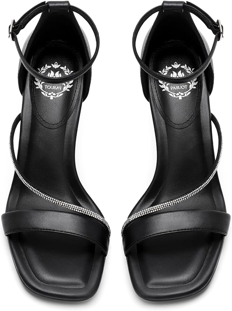 Pasuot Strappy Heels for Women - Open Square Toe Sparkly Stiletto Heel, Rhinestone Straps High Heeled Sandals for Party Prom Homecoming Office Wear, Gold Silver Black Nude, Not for Wide Feet