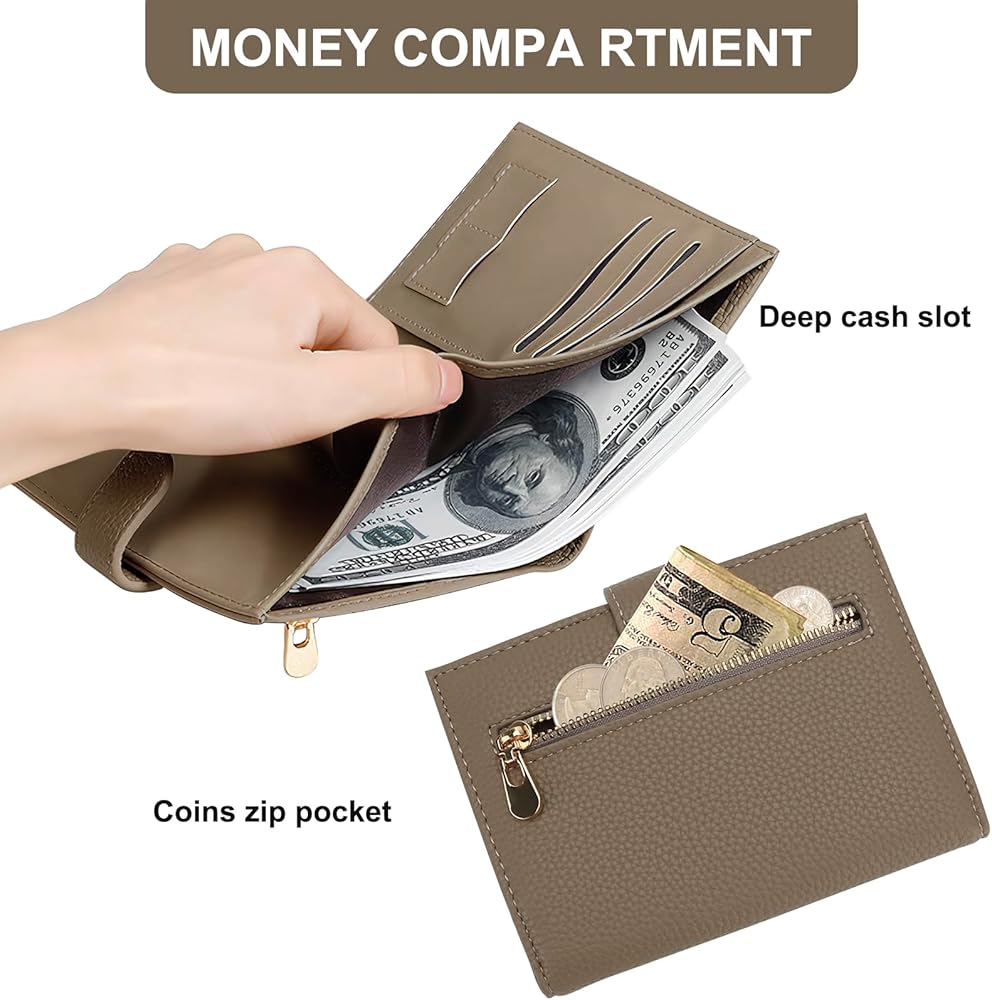 DOB SECHS RFID Passport Holder Wallet for Travel Women Slim Leather Passport Cover Wallet with Card Holders SIM Slots, Zippered Coin Pocket, Small Travel Accessories Organizer Pouch Bag, Elephant Grey