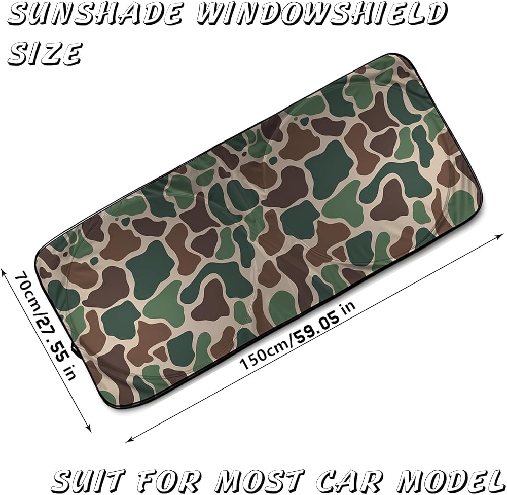 Army Dark Camo Foldable Windshield Sunshade – Premium 240T Car Sun Shade UV Protection & Heat Blocker with Easy Installation & Universal Fit,Camo Car Interior Accessories