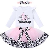 Cow Birthday Tutu Skirt Headband: Toddler baby girls farm 1st 2nd 3rd birthday cow print outfit for 1st birthday photo session with cow mini skirt cow headband. Multi-layers tutu skirt printed with cow print on skirt tulle 1 cotton lining. Pink white cow bowknot headwear lovely hair accessories for girls princess dress up western cowgirl role play, farm themed one two three year old birthday party, coming home outfit, farm birthday party supplies, farmed themed birthday celebration;