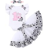 Cow Themed First Second Third Birthday Girl Outfit: Toddler baby first birthday cow theme girl outfit clothes set Romper or Birthday T-shirt and Cows Mini Tutu Skirt and Headband. Throw a farm birthday party, milk farm cow 1st 2nd 3rd birthday outfit cake smash photoshoot, cow party supplies will nice. 1st 2nd 3rd birthday cow outfit girl outfit for toddlers baby great as cow farm 1st birthday outfit, first farm birthday party supplies for cake smash session, cow theme my first birthday outfits;
