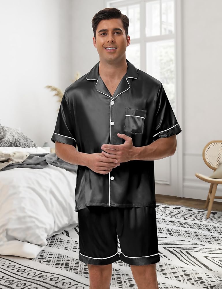 A Gift That Speaks Elegance: Whether it's Christmas, Valentine's Day, or a birthday, these black silk pajamas for men make the perfect gift for husbands, dads, or brothers. The mens black pajama set reflects a refined taste that turns any evening into a celebration of style and comfort