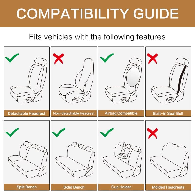 Universable Fit: Our seat covers are suitable for most cars, including Sedans, Trucks, Vans, Pick-Ups and SUVs. And wtih 3 Line Zippers, the rear seat covers will perfectly fit vehicles with 40/60, 60/40 or 50/50 split bench, and allow you to fold down the cup holder by pulling down the zippers. Easy to take off and clean.