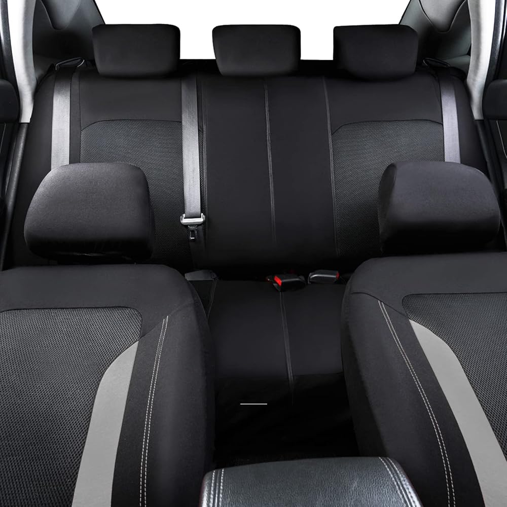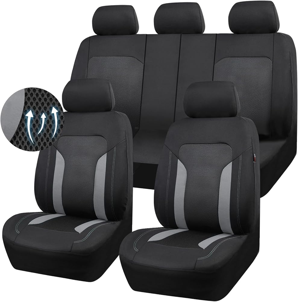CAR PASS 3D Air Mesh Car Seat Covers Full Set, Breathable Sporty Rear Bench with Zipper for Armrest Box Universal Fit 95% Automotive SUV,Truck,Sedan Interior Cute Women Airbag Compatible, Black Gray