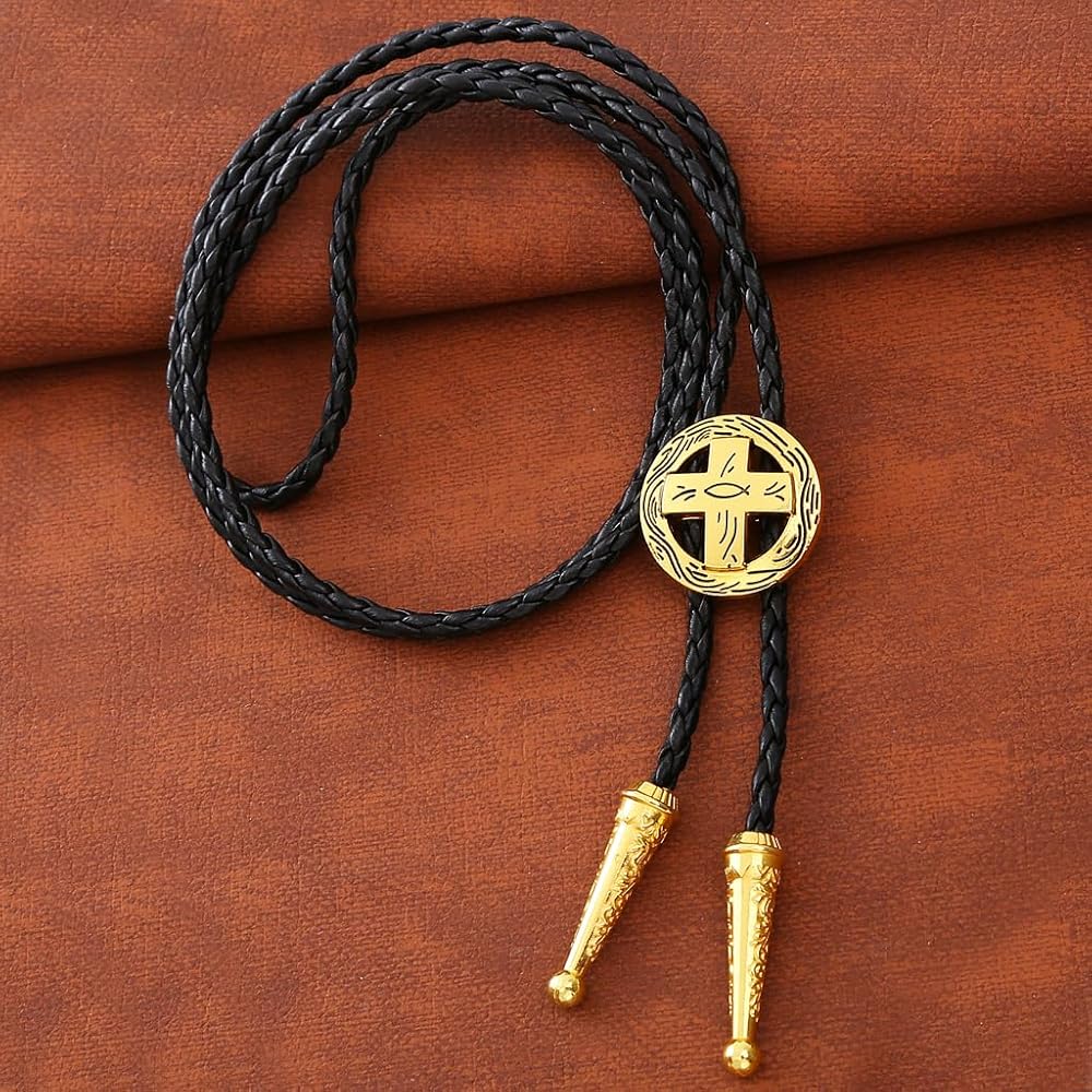 【Bolo Tie Design】The cowboy bolo tie rope is a hand braided leather type material, at the end each rope there is one metal tip which keep them from fraying. This unique design enhances the drape of the tie, making it more beautiful and fashionable