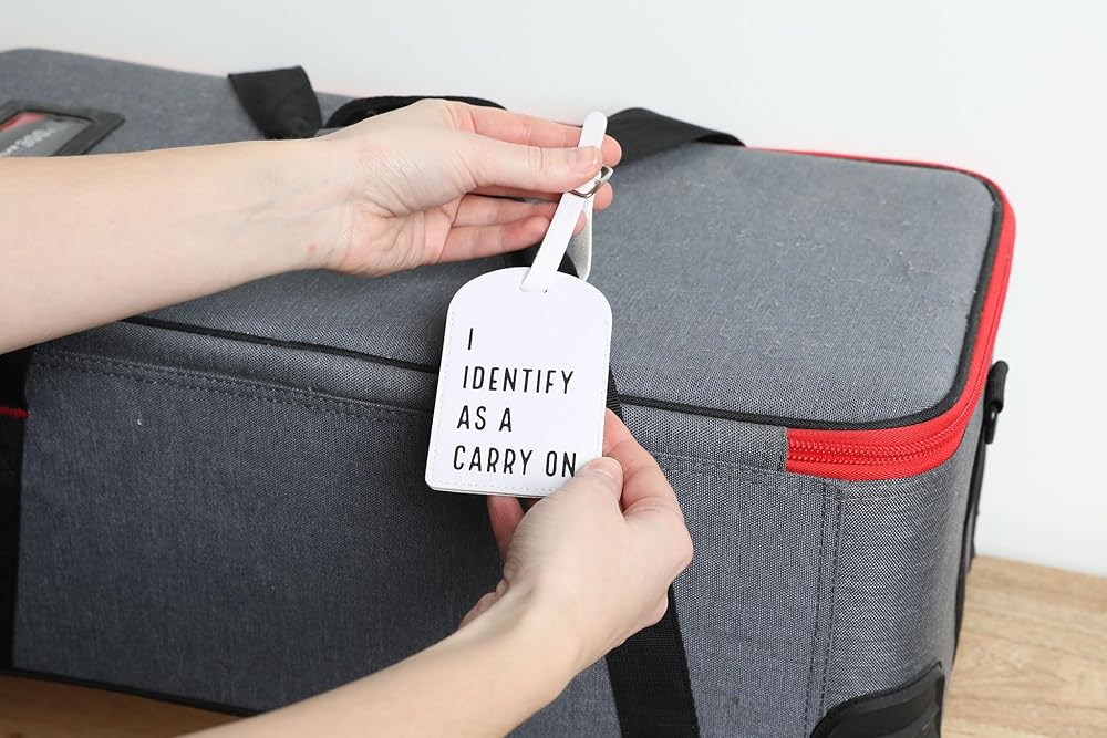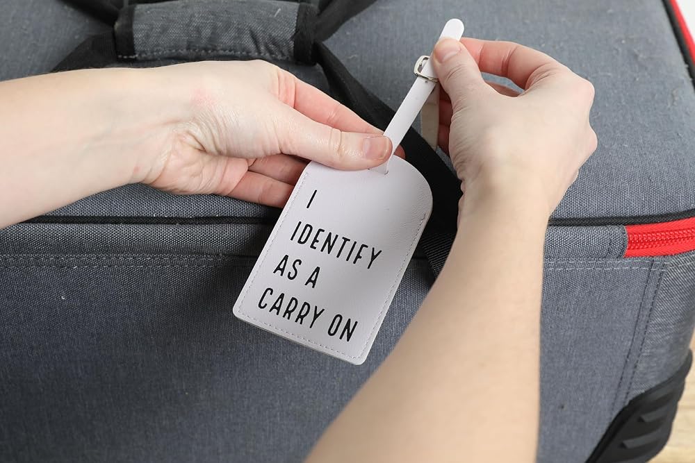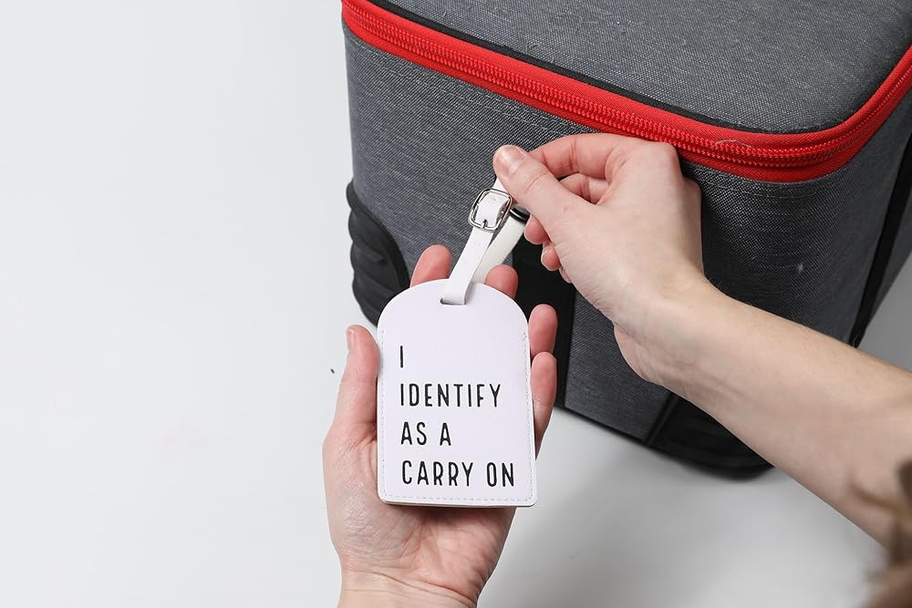 Declare your suitcase's identity loud and proud with the "I Identify As A Carry-On" luggage tag—perfect for travelers who refuse to accept baggage fees. Made from durable leather with a privacy cover for your address, this hilarious tag is built to withstand baggage claim chaos and TSA scrutiny. Whether you're an over-packer or just fighting for your bag's right to stay in the cabin, this unique travel accessory makes the perfect gift for jet-setters with a sense of humor. Slap it on and watch airline staff struggle to argue with self-identification!