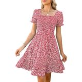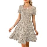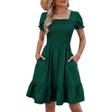 Features: Beach vacation clothes with puff sleeves to cover your arms; Cute sundress is the most attractive summer womens beach fashion essential; Casual square neck knee-length dress; A-line dress silhouette; Floral tiered dress with pockets