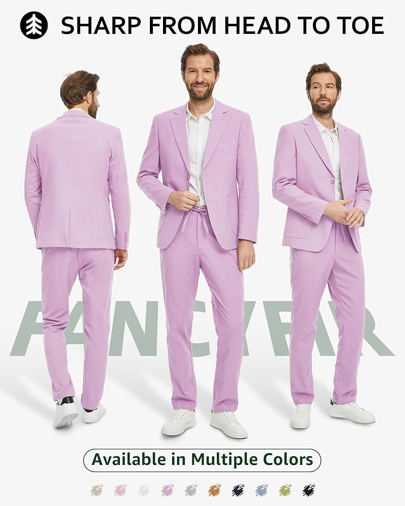 BEAT THE HEAT: Linen suits are good choices for summer, offering lightweight, breathable fabric that ensures comfort and ventilation. With linen's quick-drying and moisture-absorbing properties, you'll stay fresh and stylish, even in the hottest weather