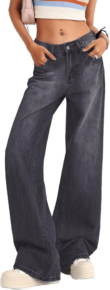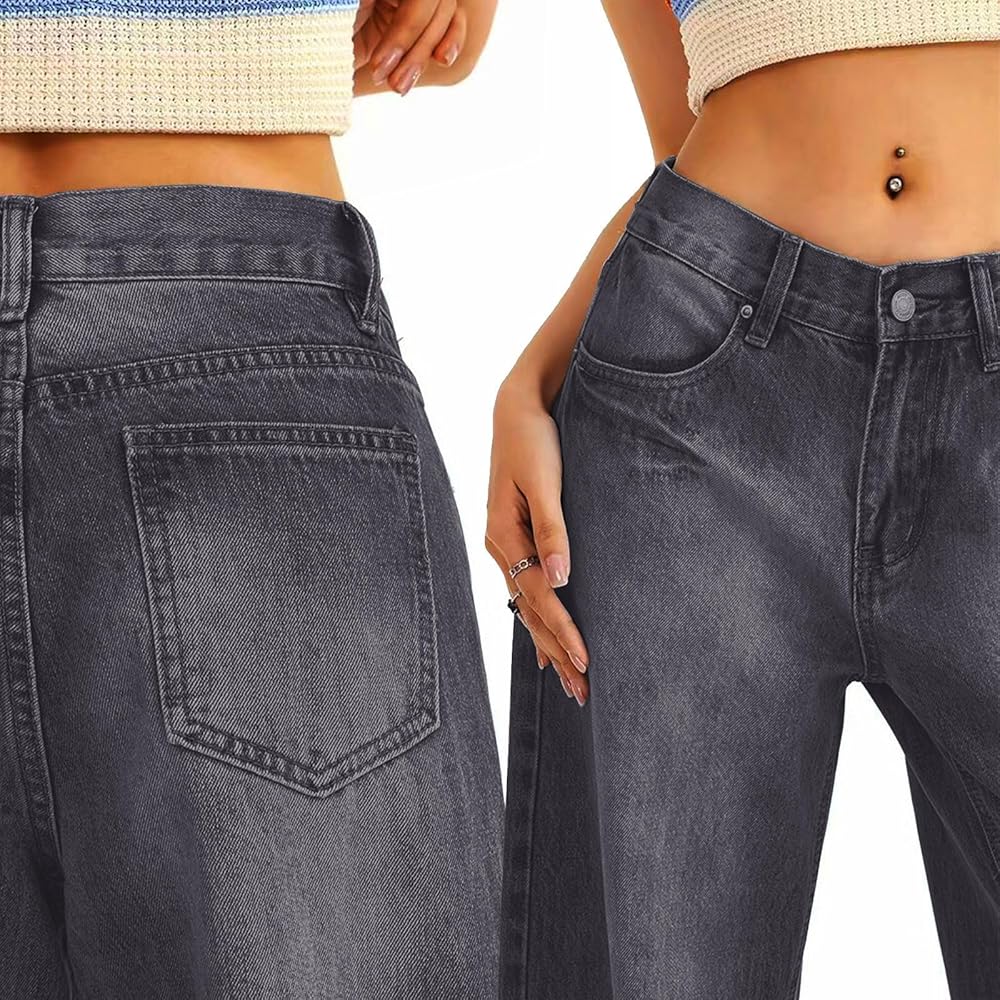 Occasion: Women's low rise baggy jeans are ideal for casual, vacation, street, school, party, music festival, going out, holiday, ect. Boyfriend straight leg jeans, 2000s y2k fashion, retro trendy denim pants.