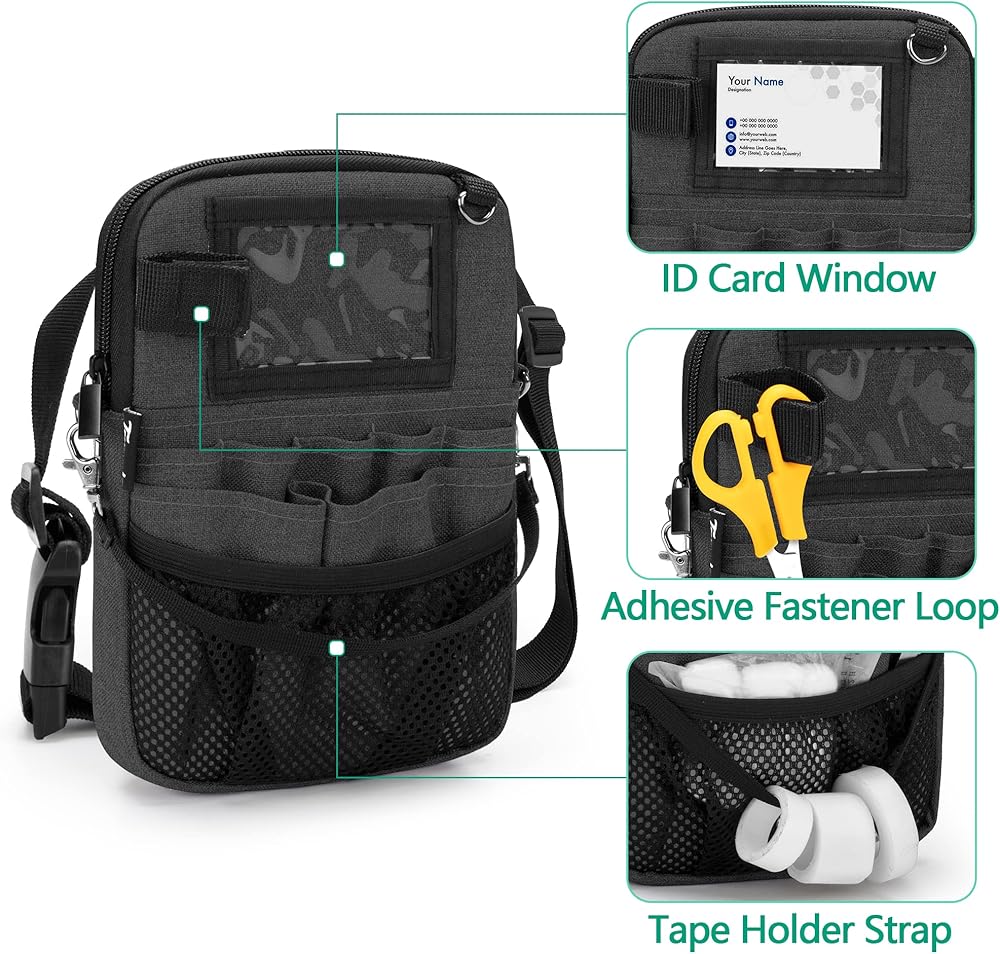 【GREAT PRESENTS】: A ID window on the top helps to identify who the bag belongs to. This nurse belt pouch is ideal for NP, PAs, EMTs, Pharmacists, Veterinarians, nurses, interns, or other first responders. Dimension: 16.3*3.4*22.7cm.(6.4”*1.3”*8.9”)