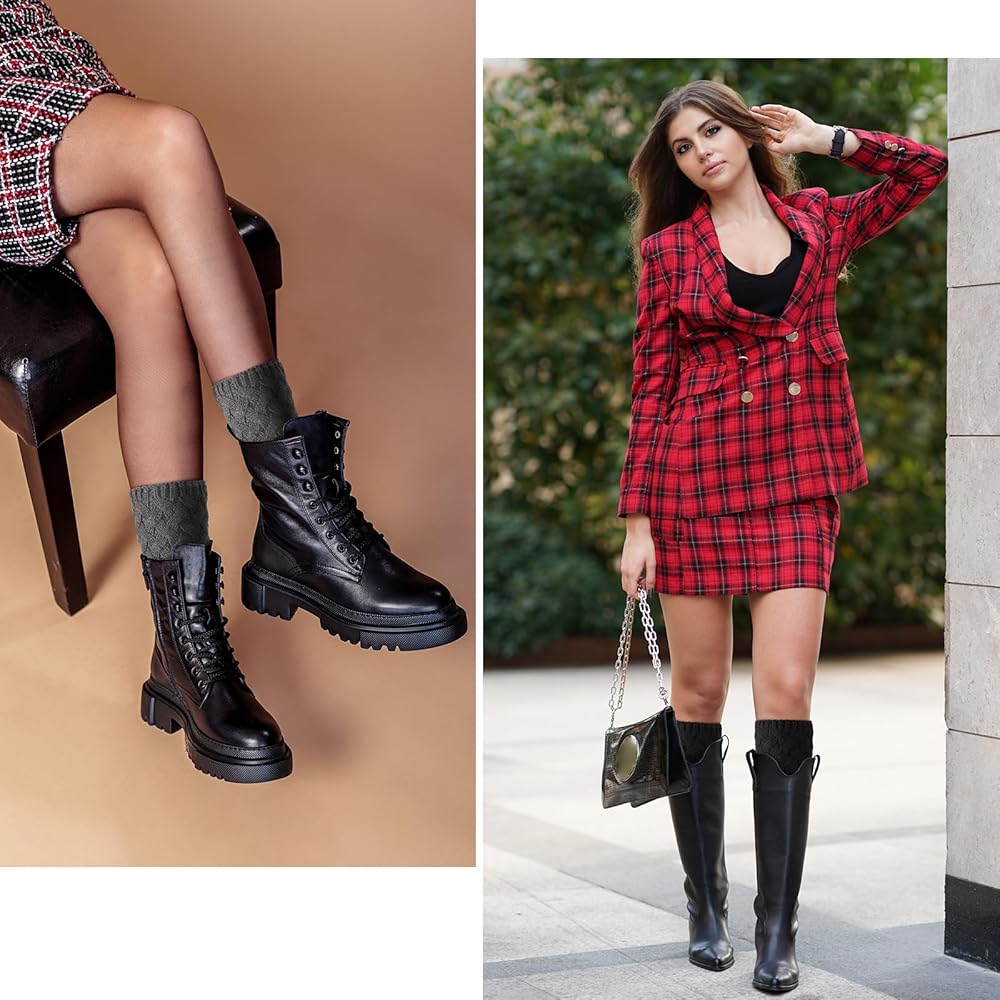Warm & Stylish: A must-have for any boot lover! Fashionable knit boot socks keep your legs warm. Provide a layer of protection for your legs in cold weather. In autumn and winter, dress up a unique design of boot socks for women can keep you warm and add beauty to your appearance.