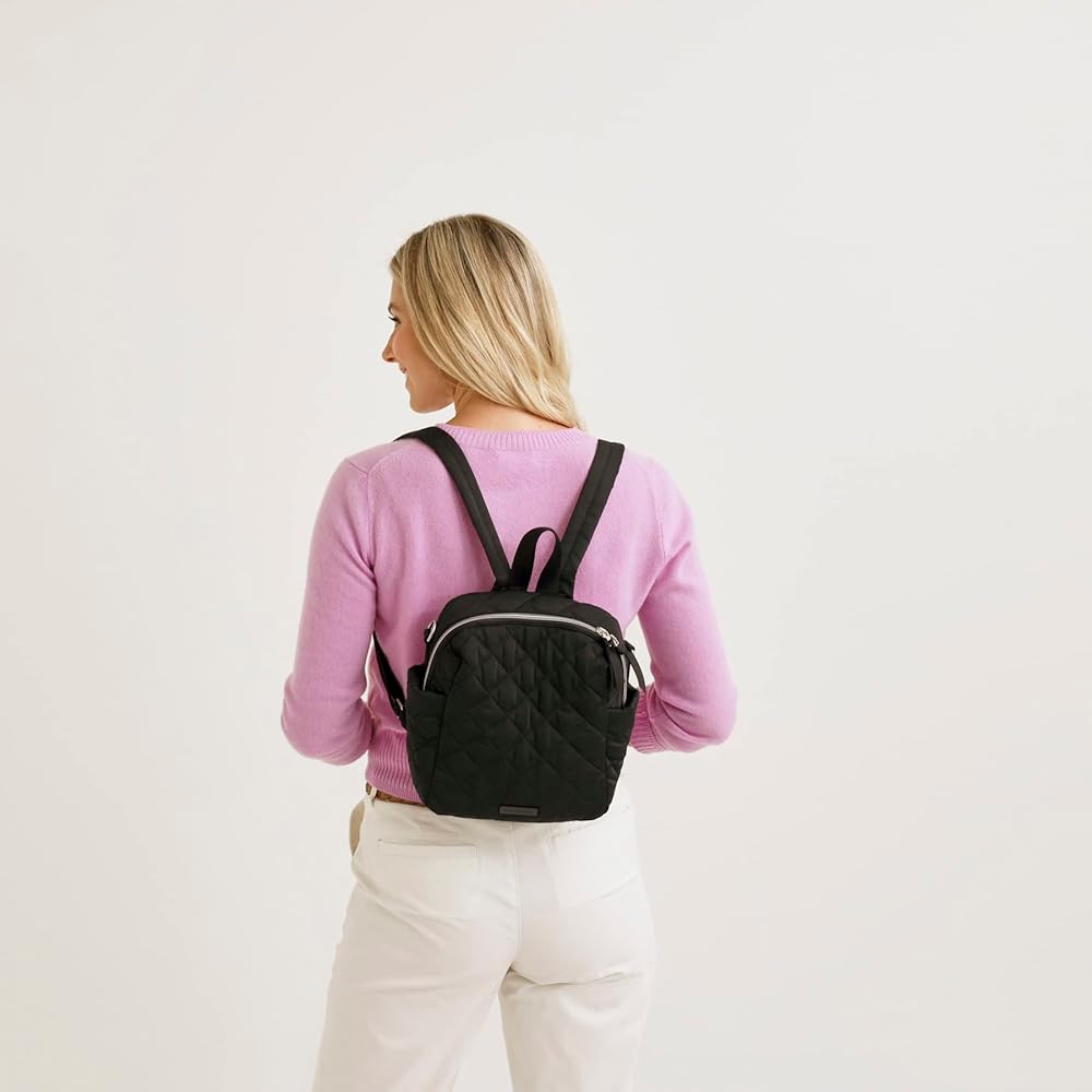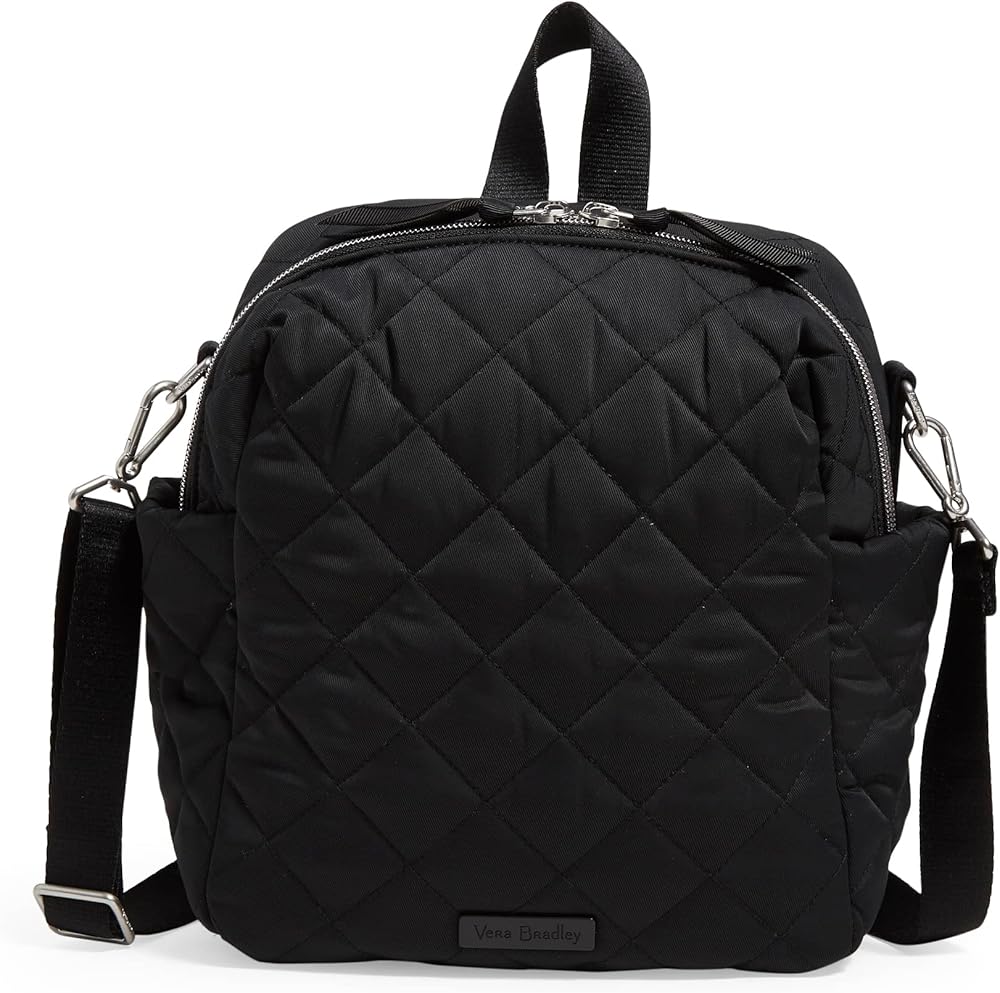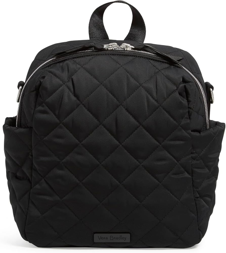 Vera Bradley is your back to campus destination! Our back packs are perfect for class, campus, work, and travel, including backpacks for men, backpacks for women, and backpacks for college, backpack purse for women, travel backpack, mini backpack, or small backpack. Our bookbags have plenty of organization, whether you are shopping for a large backpack or a mini backpack Made from quilted, sleek, water-repellent polyester. Exterior features two side pockets and a back slip pocket. Interior features a zip pocket. Zip closure. Capacity 6 L. Spot clean with mild detergent and a soft, damp cloth, rinse thoroughly; lay flat to dry