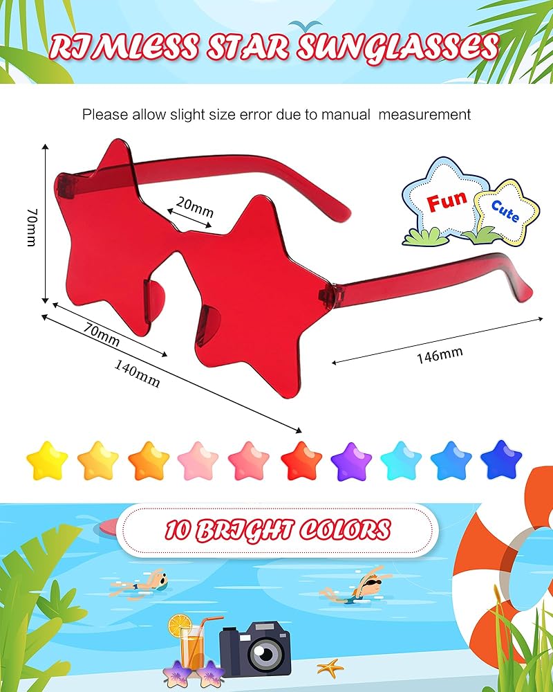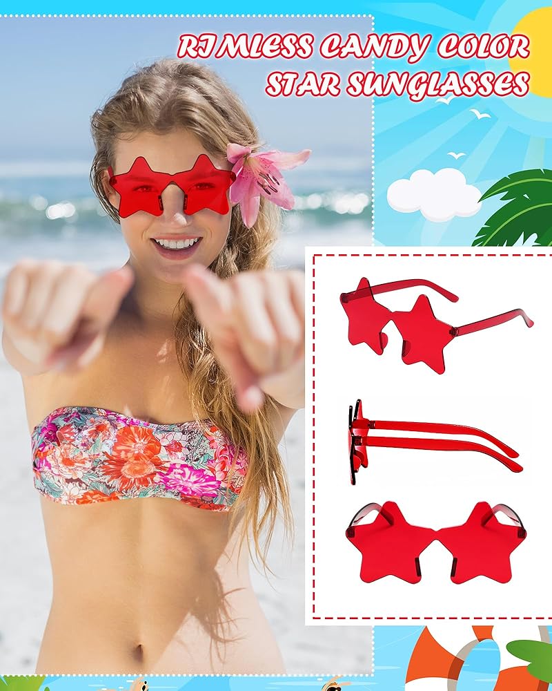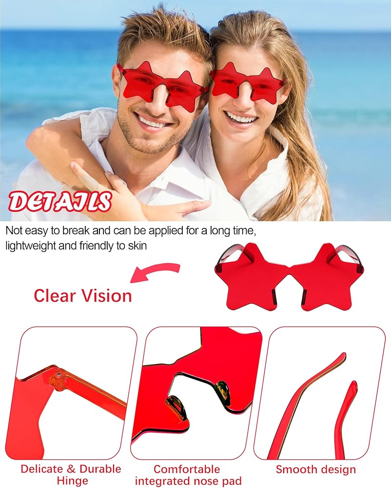 Trendy & Playful Design: Bright candy-colored star frames add a pop of fun to any outfit while filtering glare. The frameless, novel look keeps these party glasses fashion-forward and eye-catching, so you'll stand out effortlessly