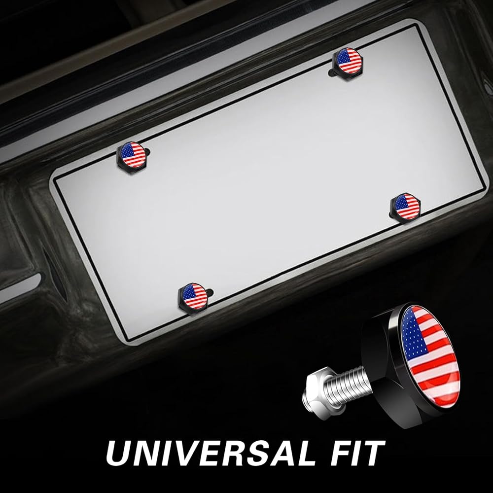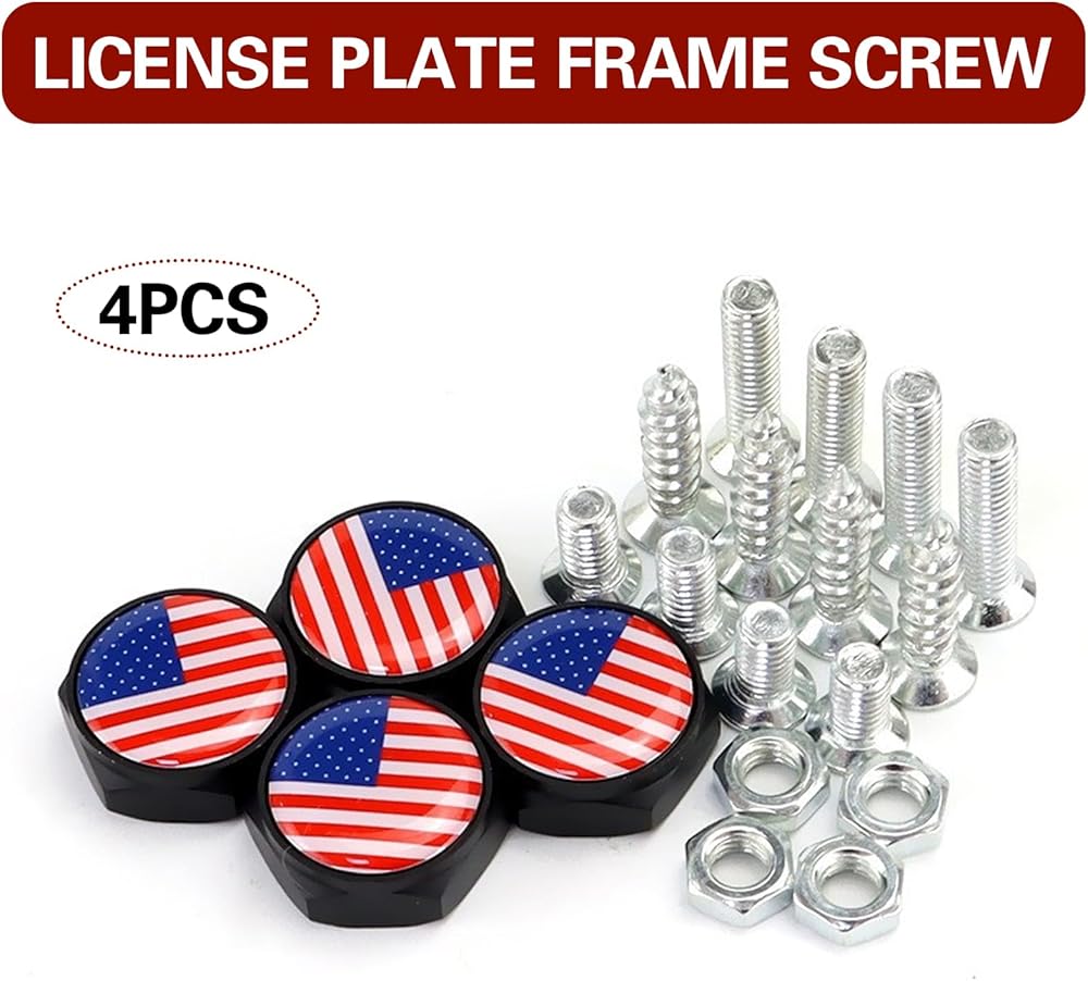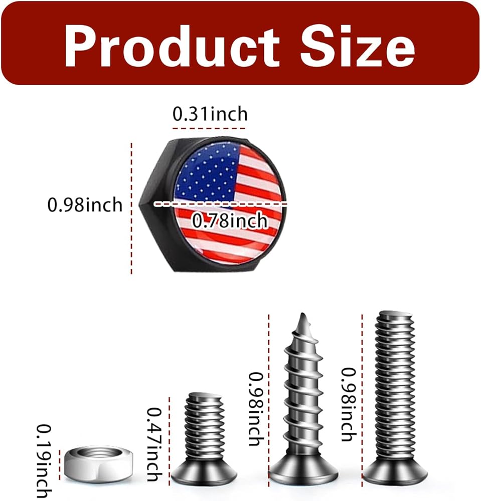 Stylish Decoration: The American flag pattern logo on these license plate screws not only showcases your patriotism but also adds a cool and fashionable touch to your license plate, transforming it from mundane to unique and eye-catching.