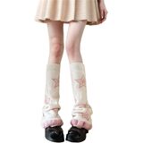 Stylish Design: Discover the elegance of white and pink gothic leg warmers, novelty pentagram graphic and knitting design. Add a unique feel to your winter wardrobe