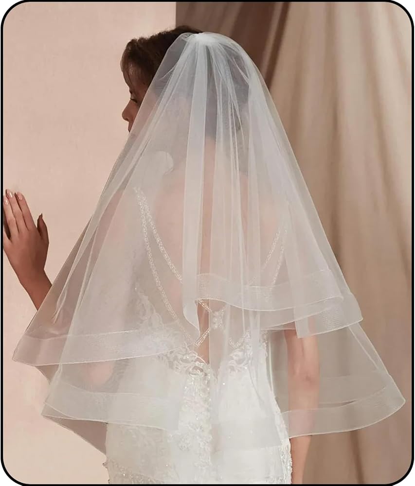 Bridal Veil Horsehair Edge Wedding Veil with Metal Comb,2 Tier Simple Tulle Ribbon Edge Cathedral Long Veil for Bride
