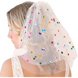 Cute Design - This short veil has a dreamy and beautiful design. The soft white veil is dotted with bright rainbow polka dots. The glitter veil makes you look as adorable as a princess