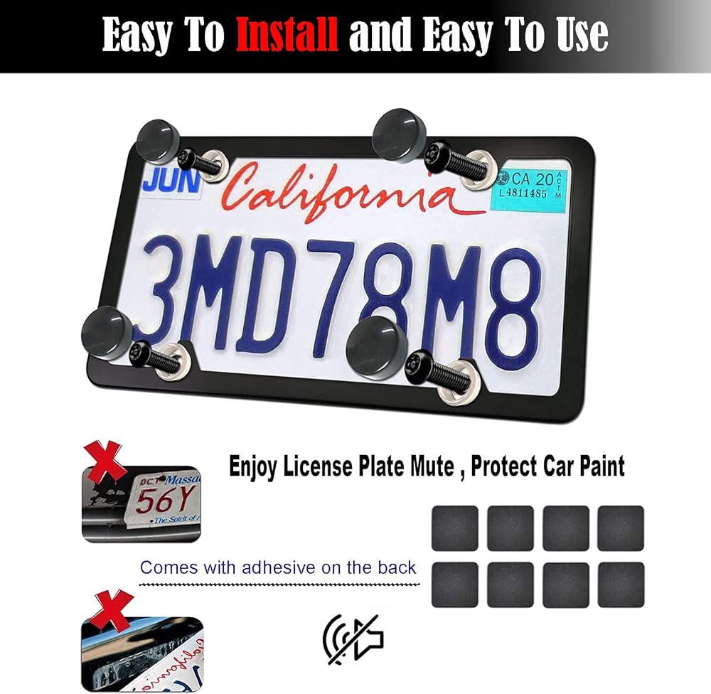 🚗 Anti-sound license plate: 8 black license plate pads can be pasted on the back of the metal license plate to prevent direct contact with the body, avoid scratching the paint surface, and reduce the vibration and noise of the license plate. Black license plate holder screw caps cover the screw heads to perfectly decorate your black license plate or car.