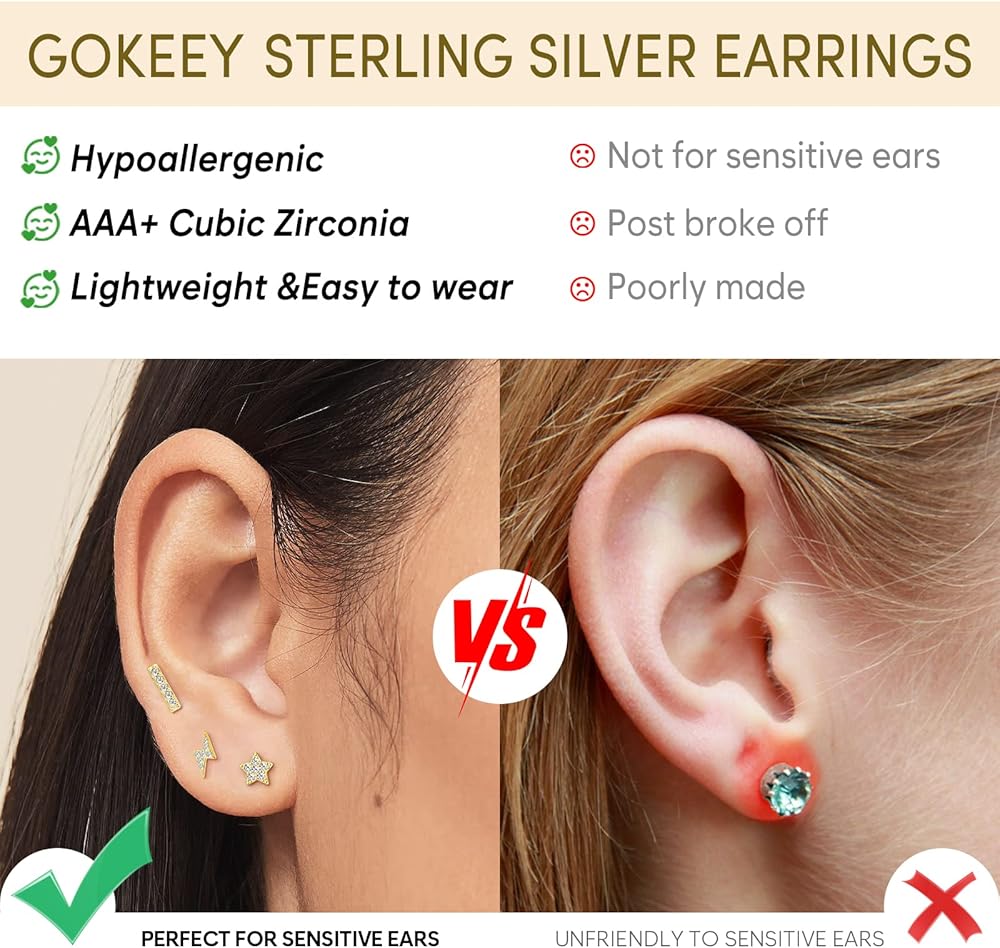 Perfect for Sensitive Ears: Our gold stud earring's are made with s925 sterling silver and plated in 14K gold, lead-free, nickel-free and hypoallergenic.it work for your super sensitive ears! No irritated your ears and suitable for your everyday wear,Comfortable for sleeping.