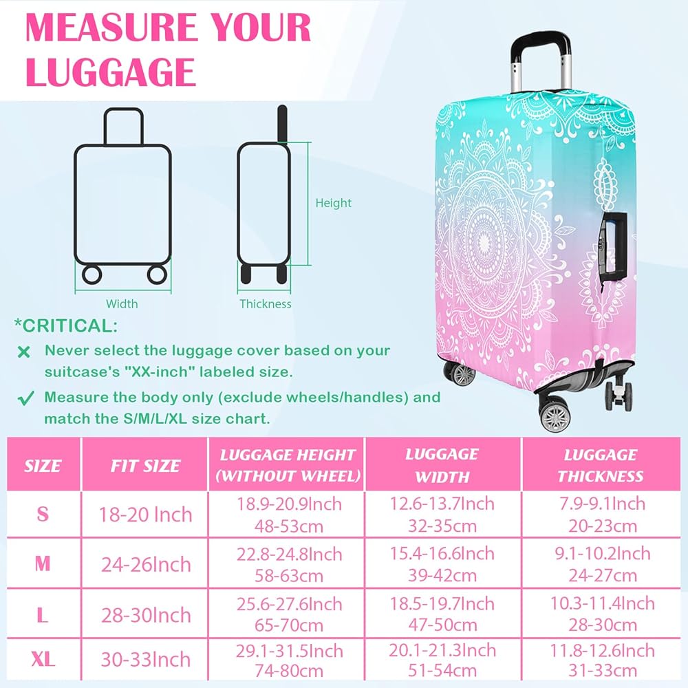 Luggage Protector Covers: Protects your suitcase from dirt, dust and scratches, keeps it clean and like new, material is easy to clean, just hand wash or machine wash, easy to install in seconds