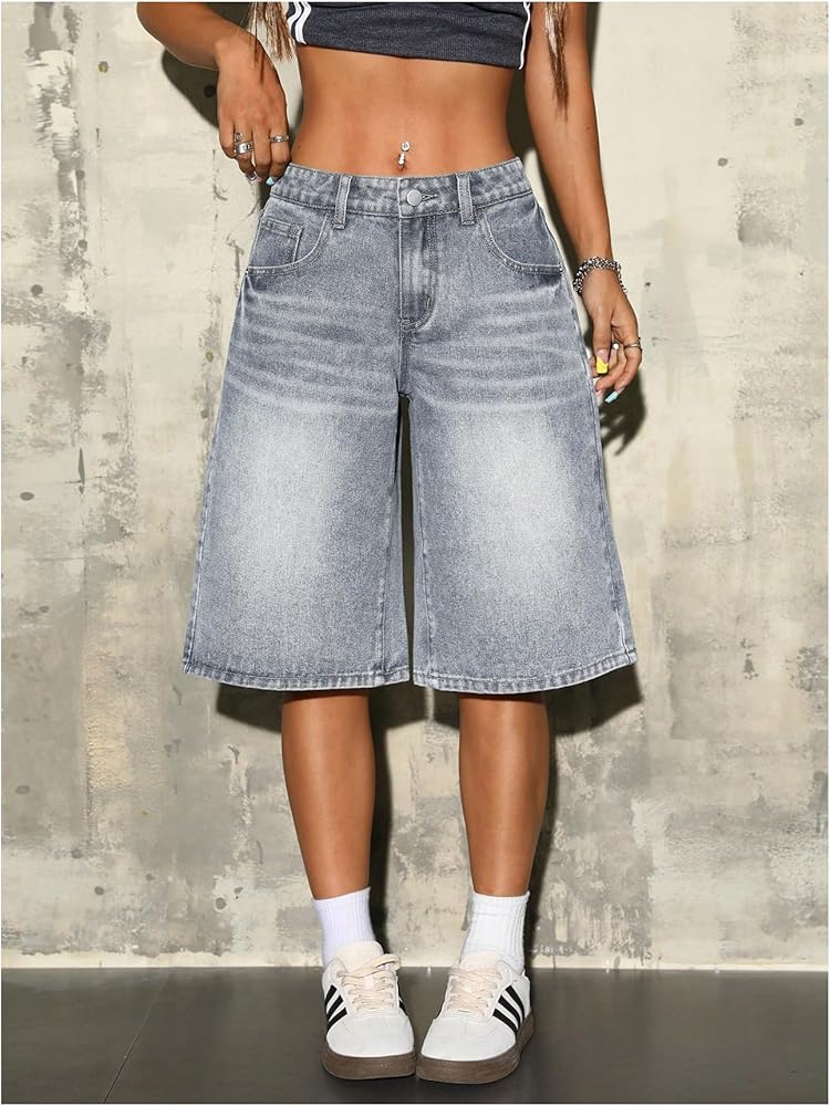 - Features: Y2k denim bermuda shorts, drop waist, wide leg, loose fit, pocket, jorts for women
