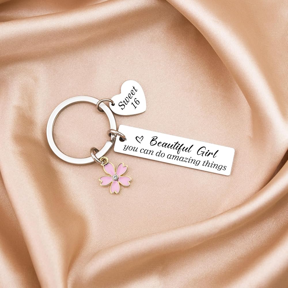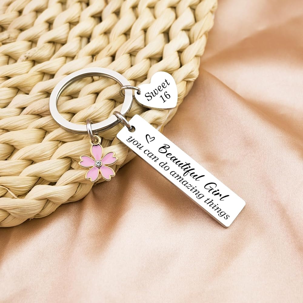 Sweet 16 Party Decorations/Sweet 16 Gifts -- Make her 16th birthday unforgettable with our stunning keychain. A token of love and encouragement reminder as she steps into this new phase of her life.