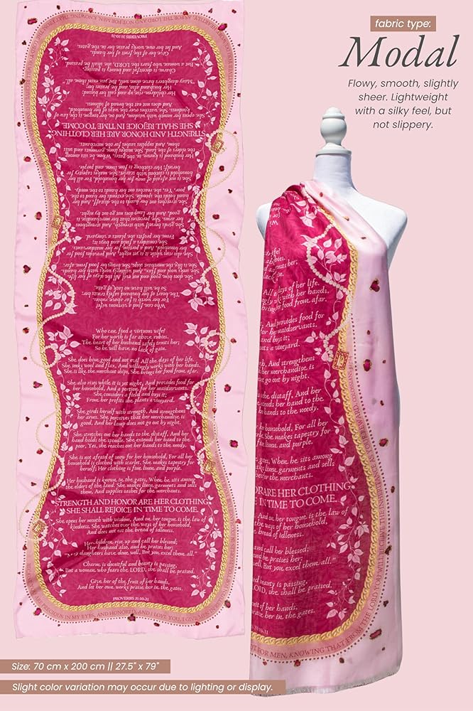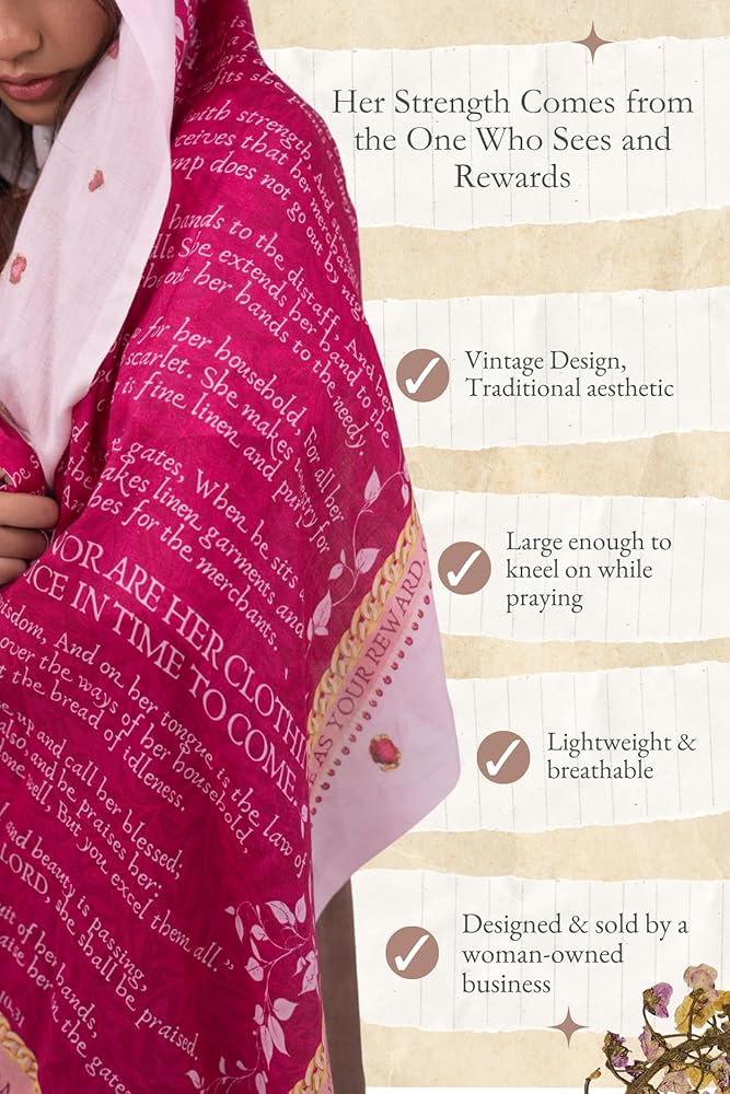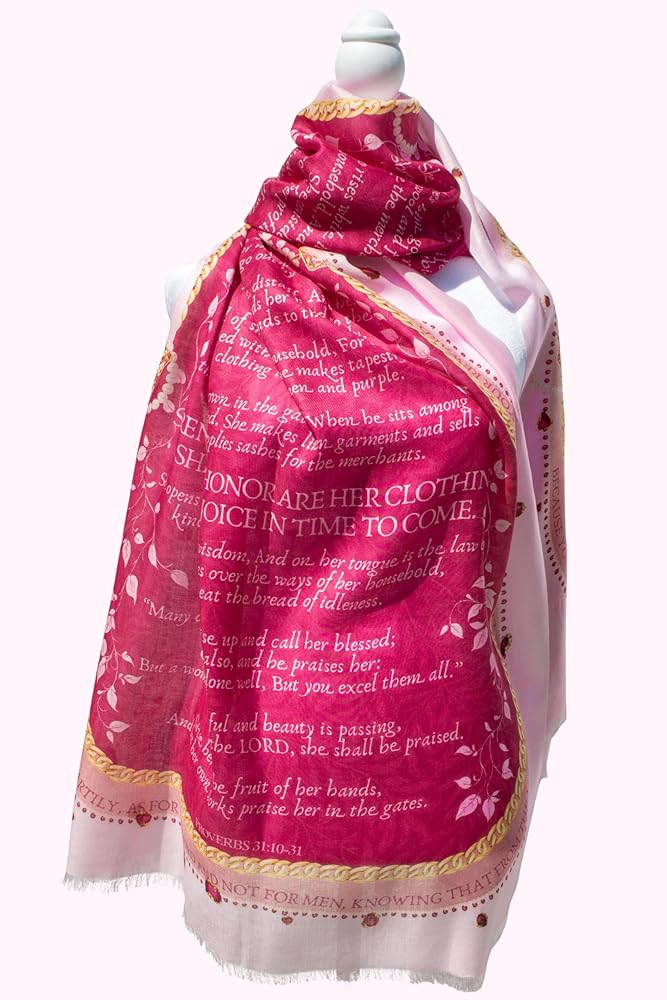 Clothed in Strength & Scripture: This prayer shawl for women features the full Proverbs 31 passage down the center, honoring God's Word and her walk with Him.