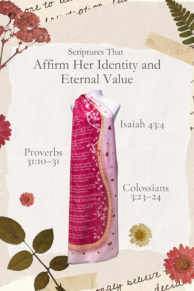 Designed with Honor in Mind: Accented with pearls, rubies, and gold tones to reflect the beauty of spiritual royalty. A meaningful prayer scarf for women Christian.