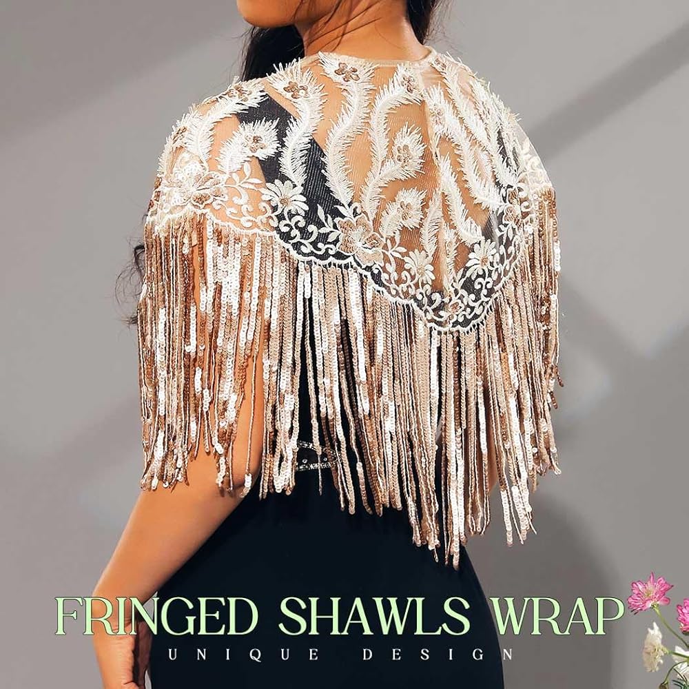 Evening Cape Cover Up for dresses Soft sheer chiffon capes,with sparkly long fringe, simple and elegant.