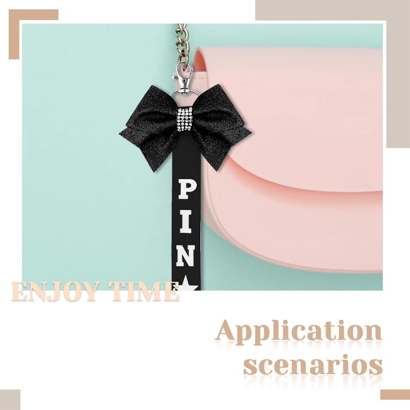 Perfect Design & Proper Size: The red bow keychains are 9.1inch, adopts a bright red tone, with a simple and elegant design that is both classic and eye-catching, which can be easily hung on keys, as backpacks ribbon keychain, or handbags pin keychain, add a touch of eye-catching color, cheer pin decorations bows for women girls