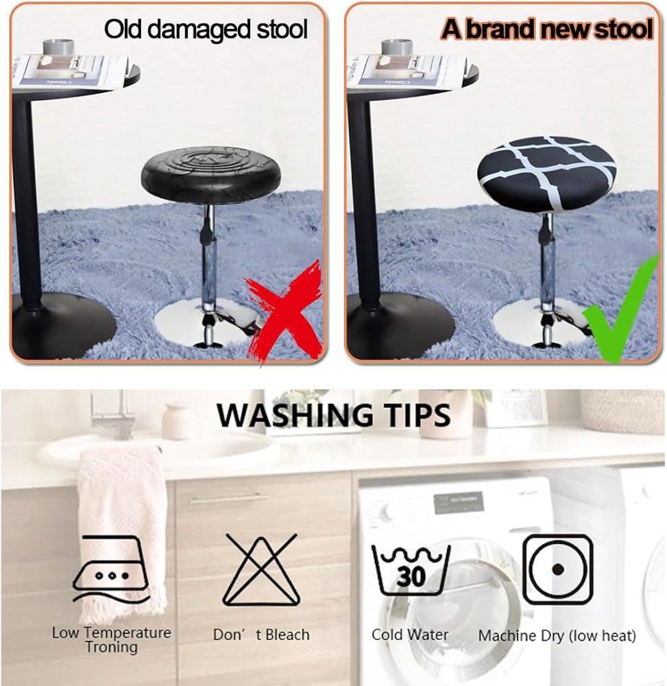 ANTI-SLIP-- Our barstool seat covers with elastic band around the hem makes the stool slipcover stays in place better, allows for easy installation and removal, making it convenient for regular washing. The rolling chair cover is both hand and machine washable, to ensure long-lasting use