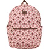 Travel in style with this pink checkered Disney 16.5" travel backpack, featuring a fun Mickey Mouse ears pattern. Made with durable nylon, the bag offers a variety of storage options, including a large zip-closure front pocket, front zipper closure, and front slit pocket. With two expandable nylon water bottle sleeves on the sides, a trolley pass-through handle for easy carrying, and padded air mesh shoulder straps for comfort, this backpack is perfect for any adventure. The interior includes a padded laptop sleeve to protect your devices. The bag can be wiped clean for easy care.