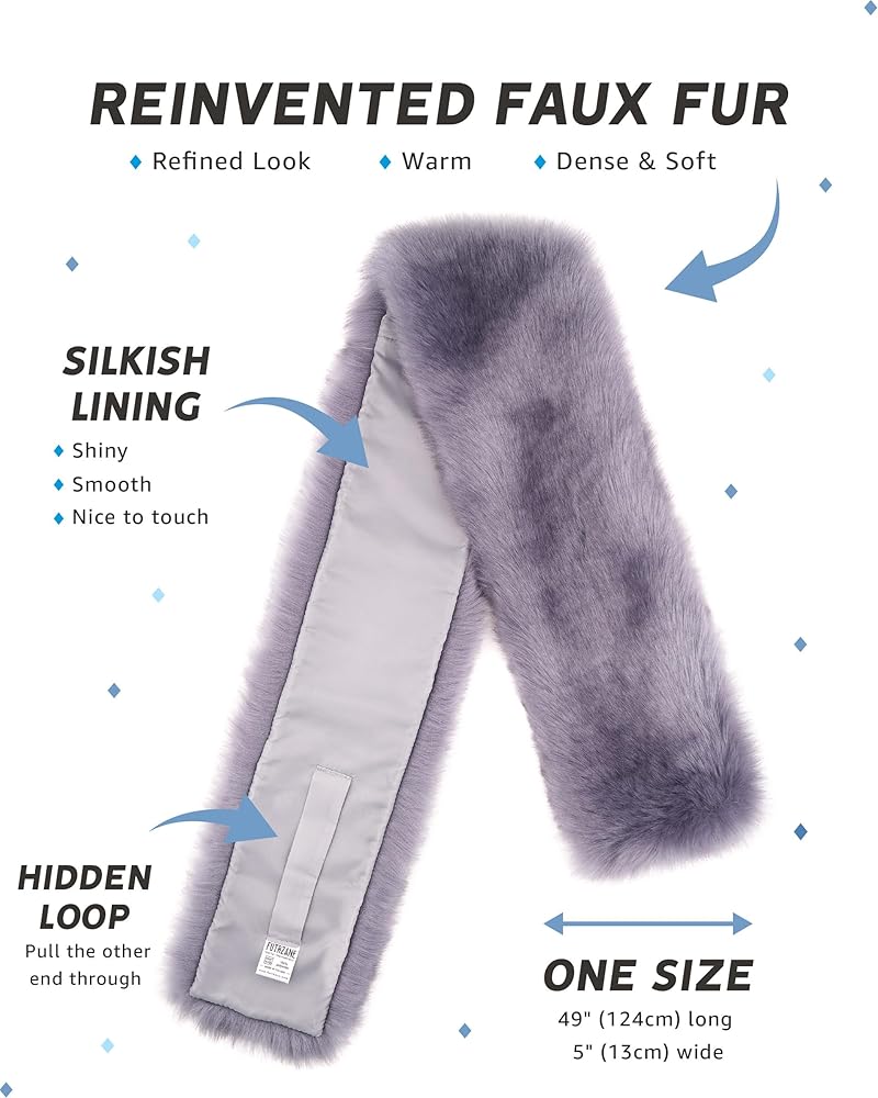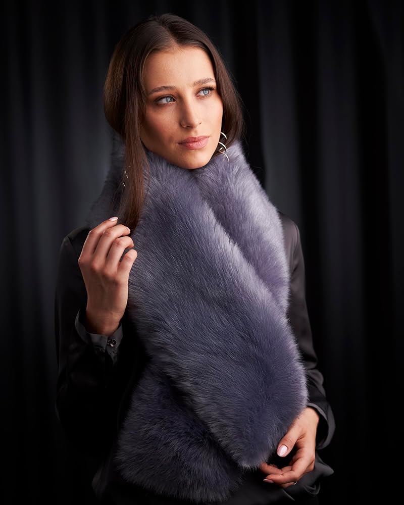 Womens faux fur scarf for any occasion, to keep you warm and stylish during the winter season. This long and fancy winter faux fur collar is fun to wear and it enhances any of your garments, let's say a jacket, coat, sweater or blazer.