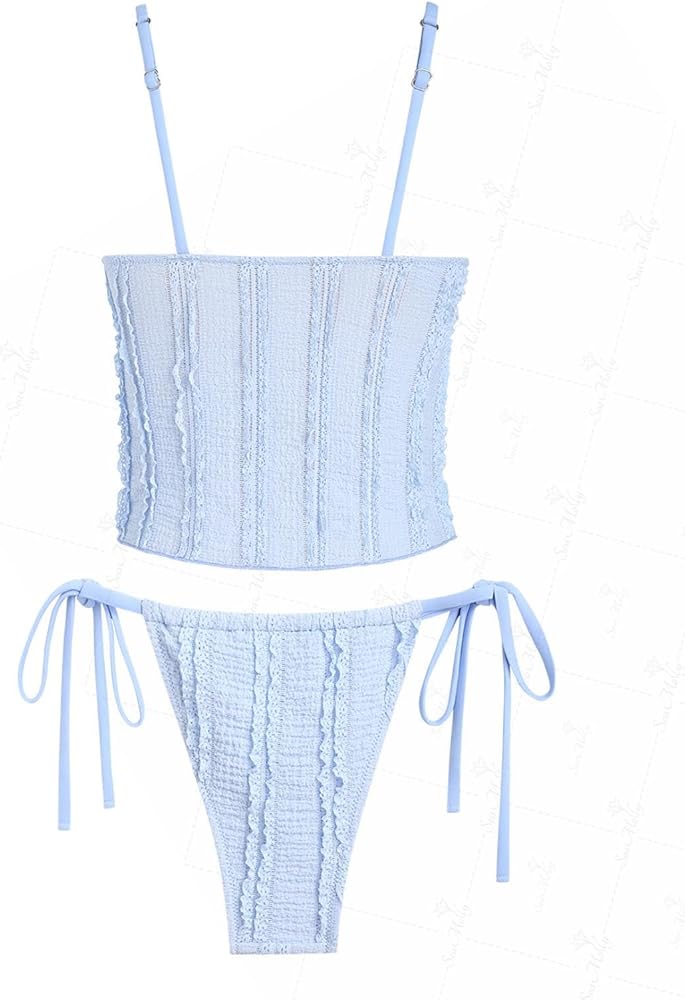 Elevate your summer wardrobe with this Seamolly tankini set, combining high-stretch fabric, trendy ruffle details, and a sleek solid color design for a standout beachwear option.