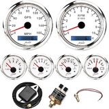RaceTech 6 Gauge Set Features 6 Most Essential Gauges For Any Boat or Car's Instrument Cluster - Includes GPS Function Speedometer & Tachometer - Fuel Level, Oil Pressure, Water Temperature & Volt Gauge.
