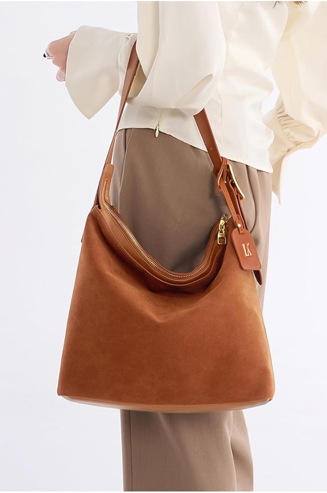 Versatile New Design: This unique suede tote bag features a removable single handle strap and adjustable shoulder strap. You can effortlessly switch between a handbag, shoulder bag, and crossbody bag. Its slouchy, casual style offers a unique sense of freedom and pleasure