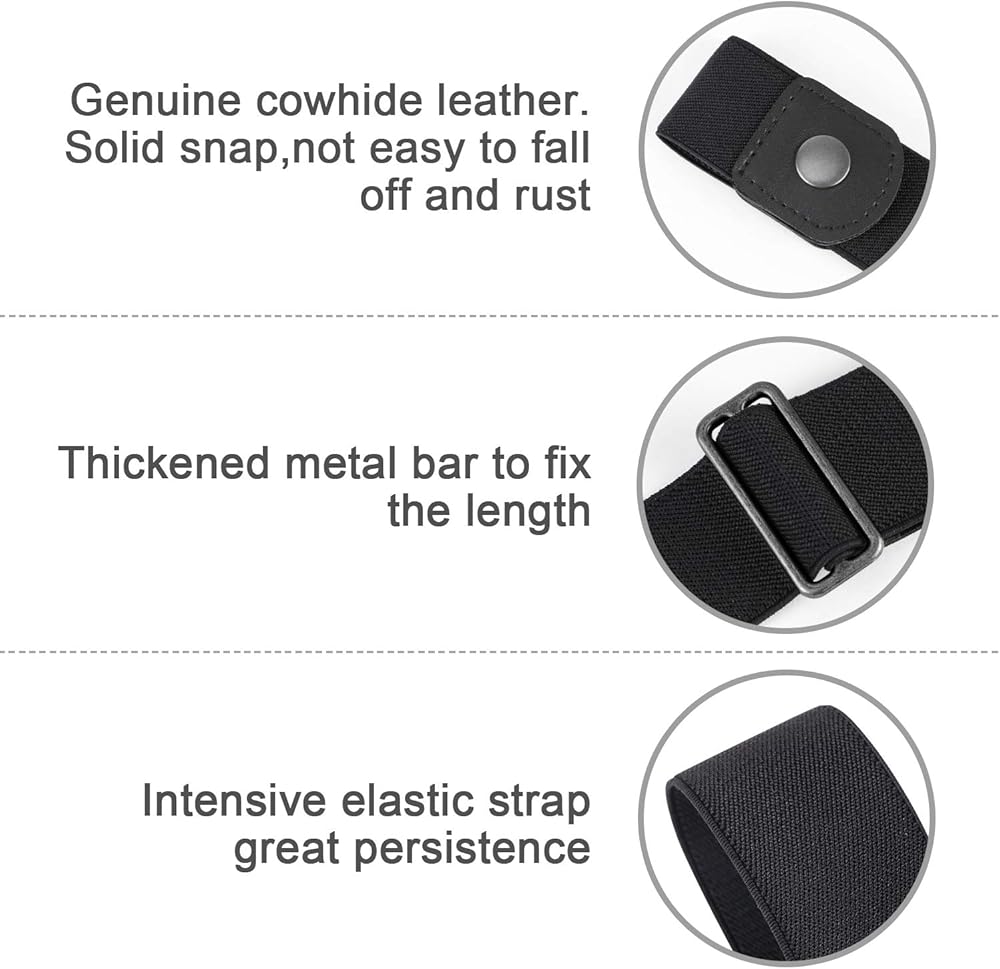 • Stretchy Belt Strap- Super comfortable and soft elastic strap for men,a fantastic stretch web belt with high quality durable leather for the whole family. No curb,hassle and buckle bulge,allows free and casual movement. Good gift for Birthday, Thanksgiving day or Christmas.The belt is also suit for family time and gardening.