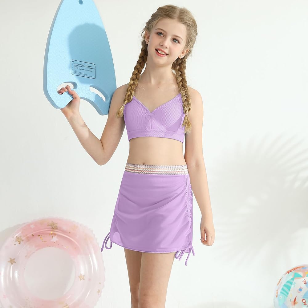 【Material】This girls 3 piece swimsuit is made of 82% polyamide 18% elasthane, features quick-drying and stretch material that is soft and skin-friendly, breathable and lightweight, comfortable to wear. The girls bathing suit provides maximum comfort and flexibility.