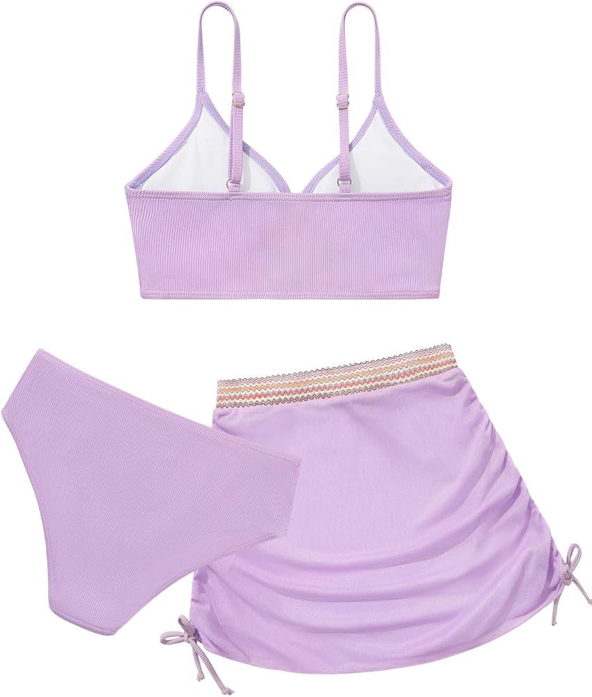 【Size & Packaging】Girls bathing suits size 9-10, girls swimsuits size 11-12, teen bathing suits for girls 13-14, girls swimsuits size 15-16, swimsuits for teen girls. You will get 1*Swimsuit Tops + 1*Swimsuit Bottoms + 1*Cover Up. Hand wash and machine wash are both available, do not bleach. Please refer to our size chart carefully before ordering. Enjoy Summer Time !