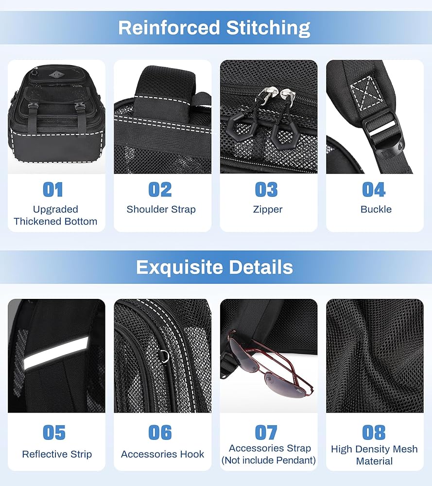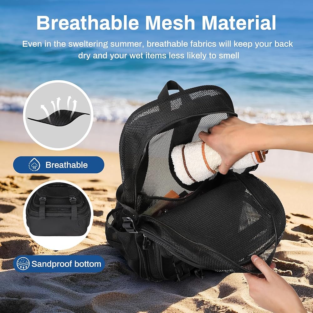 High Density Mesh Material: Combined with the craftsmanship of reinforced stitching and sturdy frame long the outer seams and upgraded sand-proof cloth bottom for offering durability and breathability to withstand daily wear and tear and stay your wet objects odor free